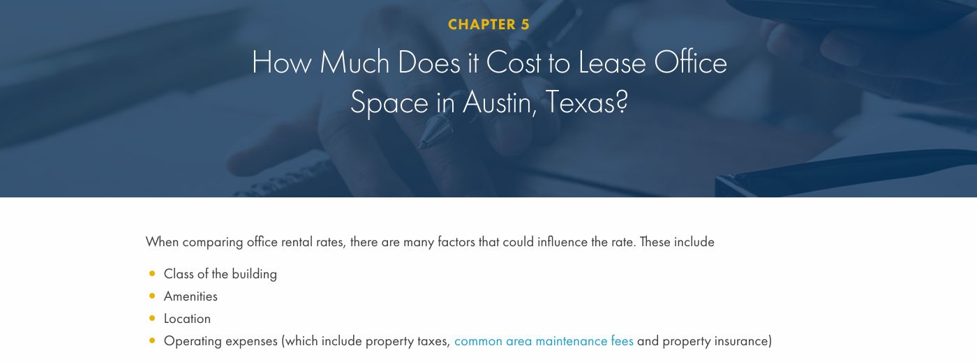在这里,我们的客户阿奎拉广告,总部设在得克萨斯州奥斯汀,提出了一个全面的解释想在他们的都市区租一间办公室吗.