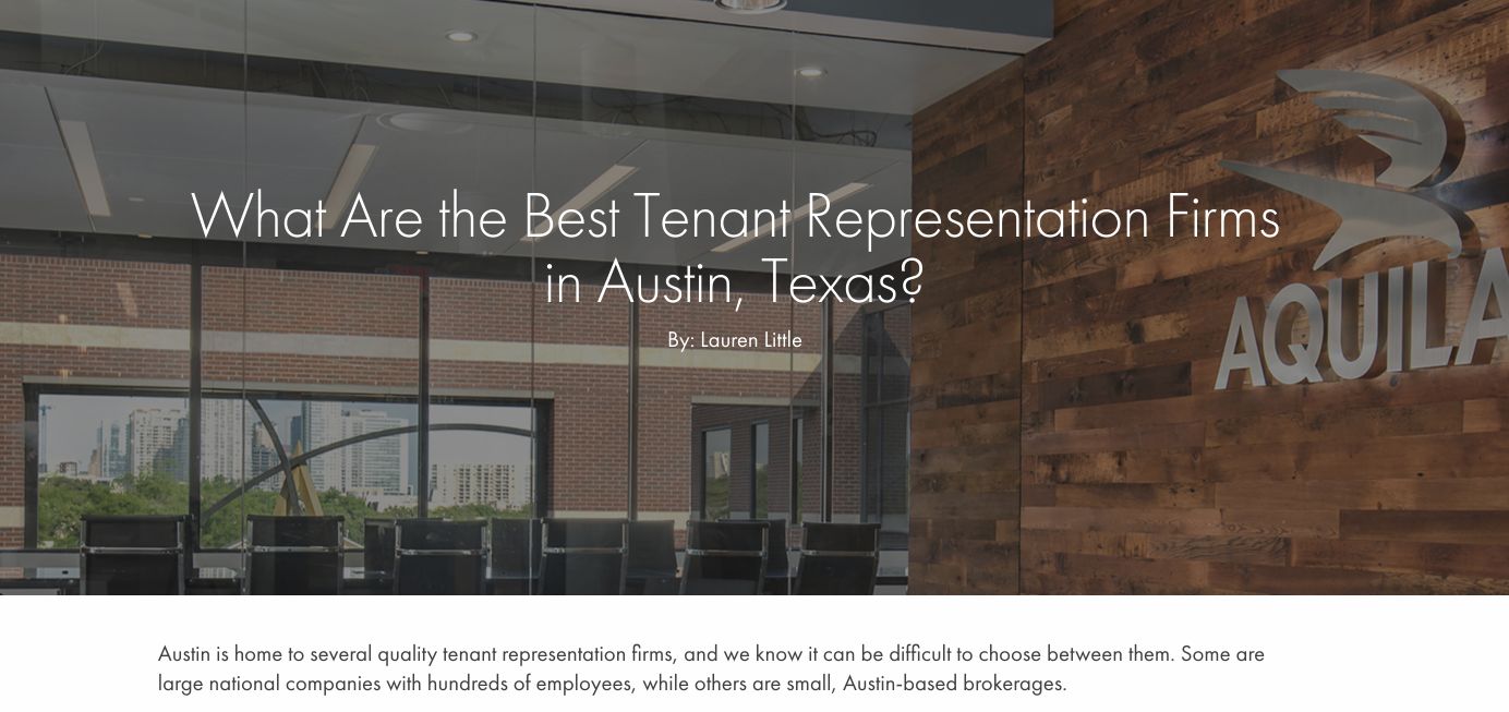 点击这篇文章,你会发现五个最好的选择,以及对每一个的快速评论。Aquila提供了背景,包括每家公司在奥斯汀的时间和其他关键事实和数据,以及为您选择最佳租户代表的清单: