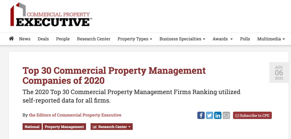 请查看商业物业执行顶级物业管理公司清廉排名. 这是可读性很高的,您可以点击了解更多关于他们的方法,并查看以前的排名。我们知道它是最新的,因为年份和出版日期都提供了。