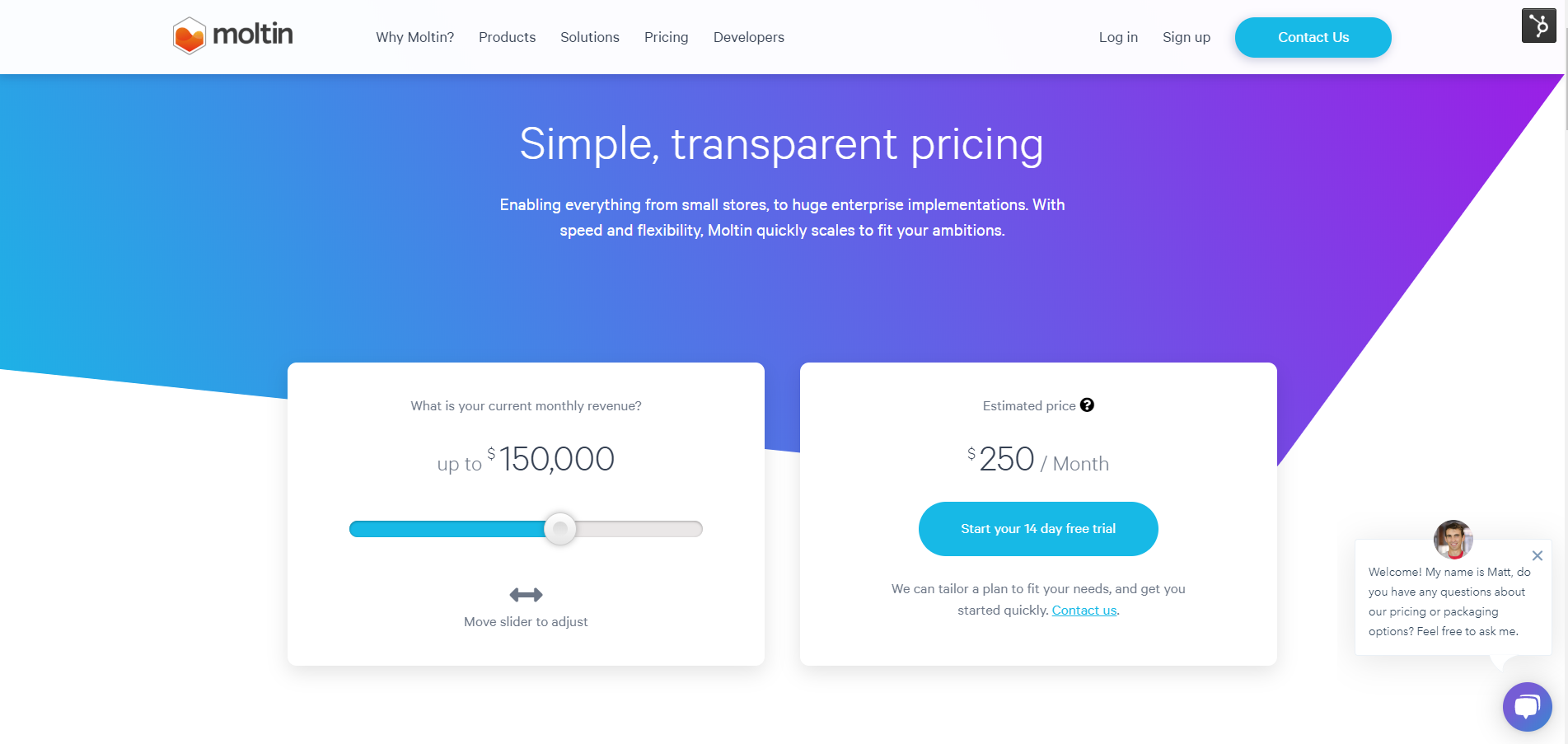 这是一个很好的例子Moltin它使用了一个简单的滑块,让用户可以不费什么力气就计算出正确的价格。