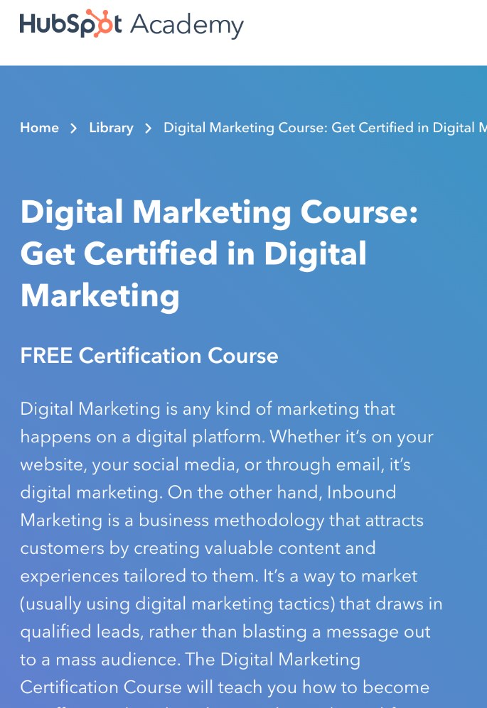 Bachir建议利用可用的免费资源及时学习该平台:“你应该先去HubSpot Academy看看,”他说,然后花四个小时学习数字营销认证和三个小时营销软件认证.