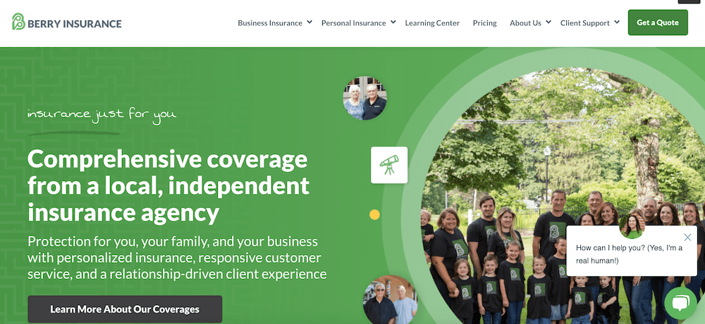 检查IMPACT客户端贝瑞保险在右上角有请求报价的按钮。虽然这是他们的浆果绿色,它与白色的导航对比很好。