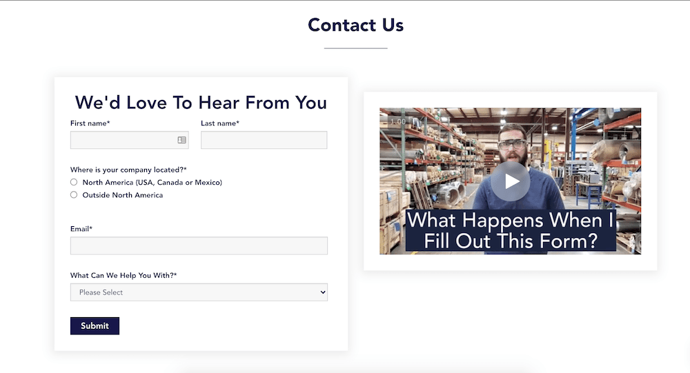 看看这个IMPACT客户W.S. Tyler提供的联络表格.表单经过了优化,因此字段将根据他们选择的“我们能帮你什么?”而自动改变。通过这种个性化,用户可以填写一些与实际问题相关且有用的内容。